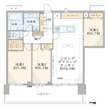 ゆりかもめ『豊洲』駅徒歩9分 - 間取り : 3LDK+WIC