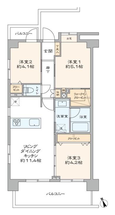 - バルコニー面積11.11 ㎡