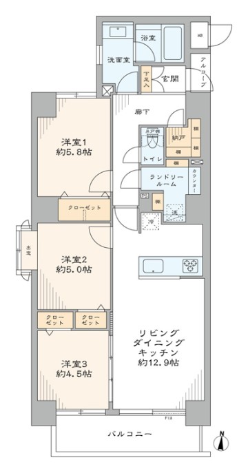 - 間取り3LDK+納戸+ランドリールーム