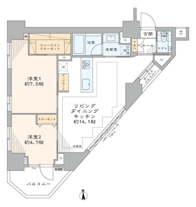 JR総武本線『馬喰町』駅徒歩3分 - 間取り : 2LDK+WIC