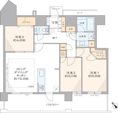 みなとみらい線『馬車道』駅徒歩7分 - 間取り : 3LDK+WIC